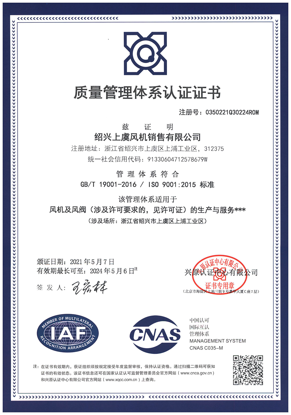 ISO9001:2000質量體系認證·國家消防CCCF認證企業(yè)風機專業(yè)制造商