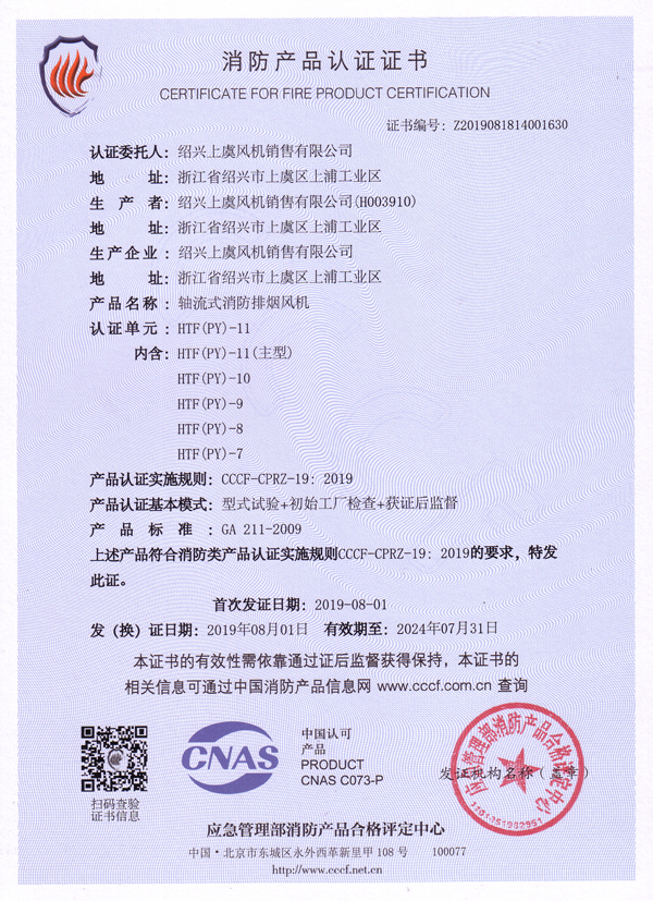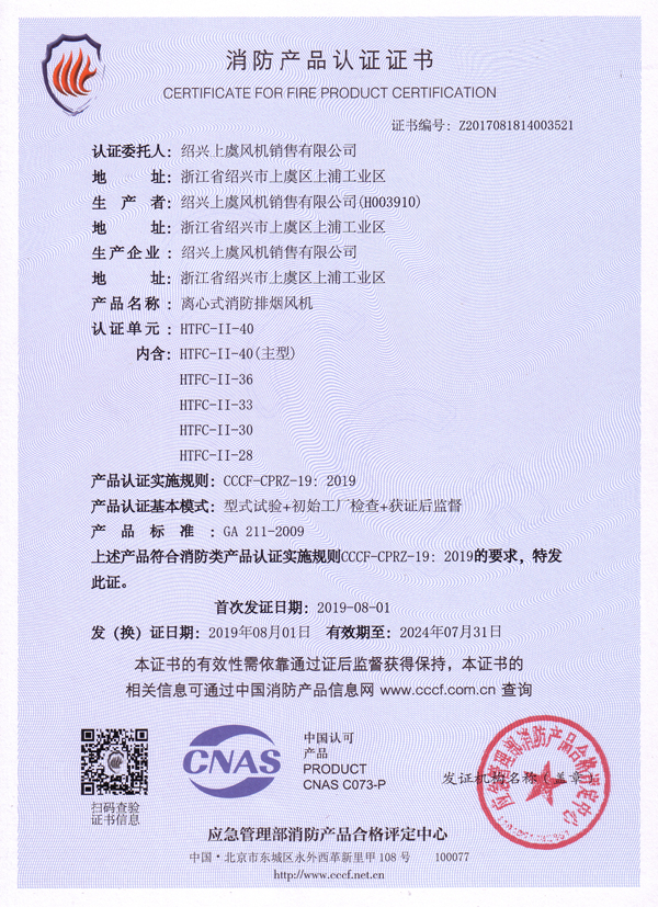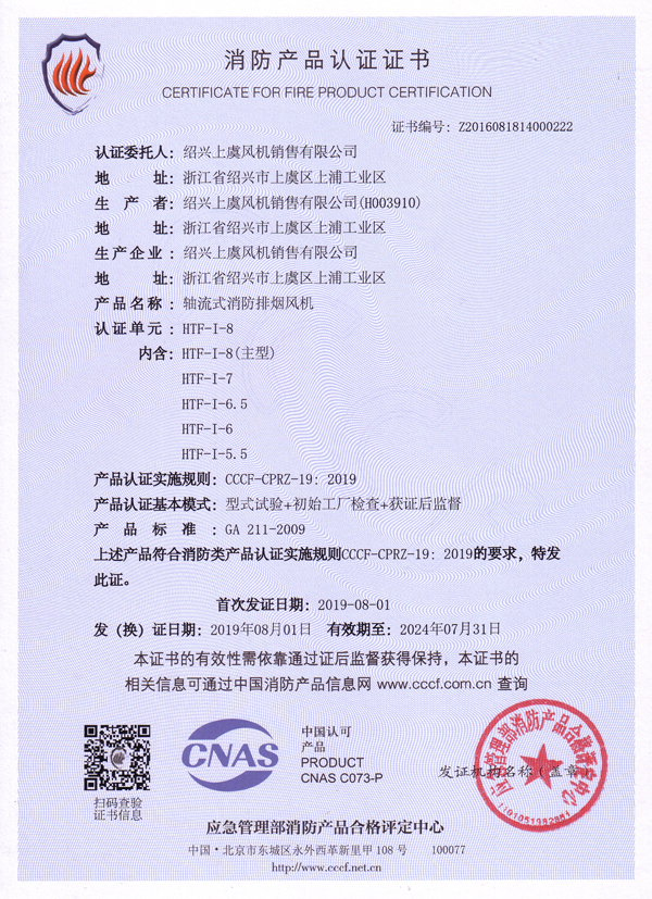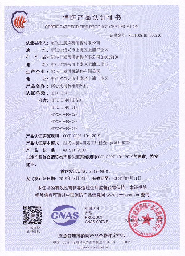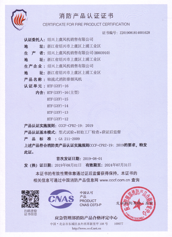 ISO9001:2000質(zhì)量體系認證·國家消防CCCF認證企業(yè)風機專業(yè)制造商